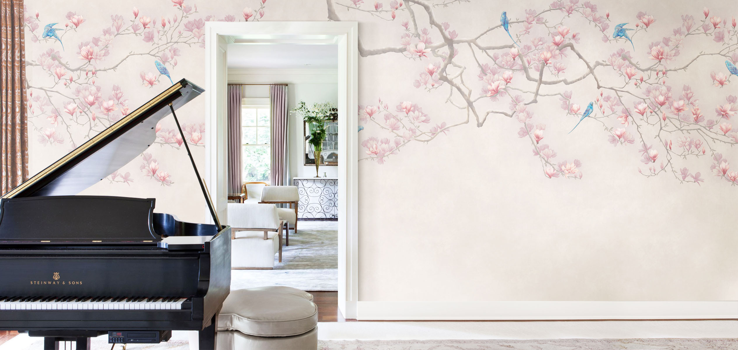 — в ресторанах, отелях и общественных пространствах.Декоративные фрески Affresco хорошо сочетаются с интерьерной лепниной, молдингами, классическими карнизами и декоративными красками, создавая атмосферу изысканного и художественного пространства. Коллекция Atmosphere часто используется дизайнерами интерьера для создания эффектных стеновых композиций, где настенное панно становится центральным элементом интерьера.