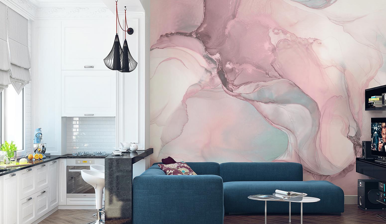 — в ресторанах, отелях и общественных пространствах.Декоративные фрески Affresco хорошо сочетаются с интерьерной лепниной, молдингами, классическими карнизами и декоративными красками, создавая атмосферу изысканного и художественного пространства. Коллекция Fluid часто используется дизайнерами интерьера для создания эффектных стеновых композиций, где настенное панно становится центральным элементом интерьера.