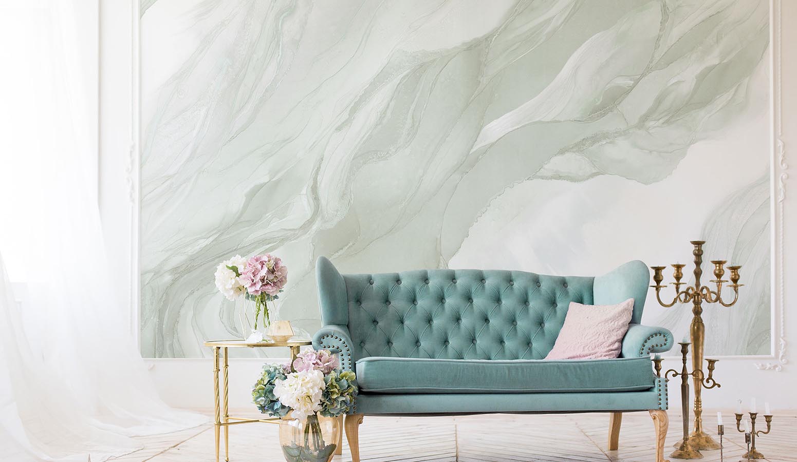 — в ресторанах, отелях и общественных пространствах.Декоративные фрески Affresco хорошо сочетаются с интерьерной лепниной, молдингами, классическими карнизами и декоративными красками, создавая атмосферу изысканного и художественного пространства. Коллекция Fluid часто используется дизайнерами интерьера для создания эффектных стеновых композиций, где настенное панно становится центральным элементом интерьера.