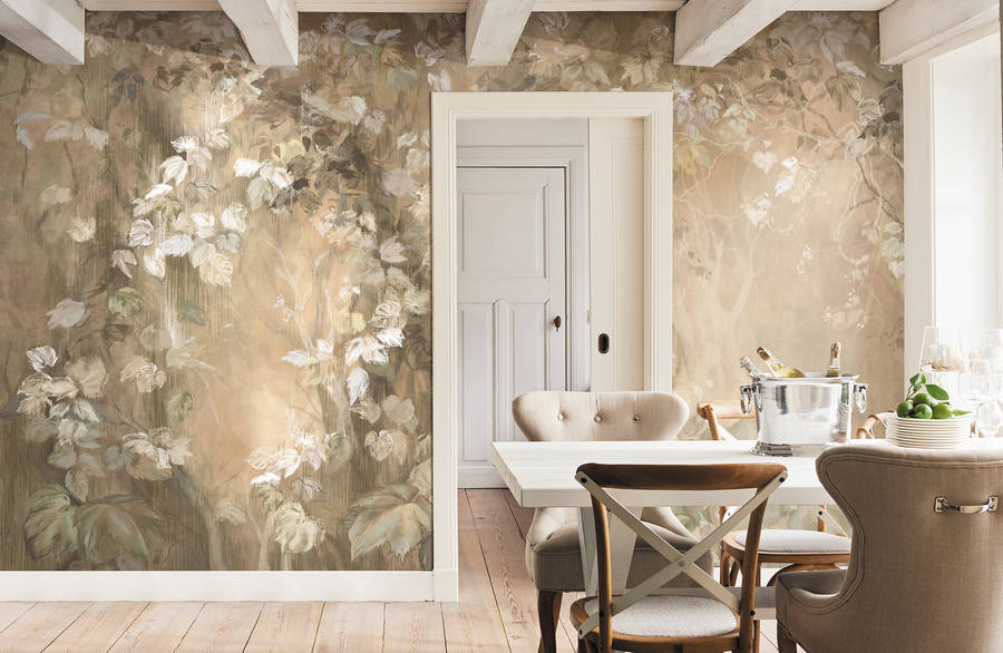 — в ресторанах, отелях и общественных пространствах.Декоративные фрески Affresco хорошо сочетаются с интерьерной лепниной, молдингами, классическими карнизами и декоративными красками, создавая атмосферу изысканного и художественного пространства. Коллекция Vesna часто используется дизайнерами интерьера для создания эффектных стеновых композиций, где настенное панно становится центральным элементом интерьера.