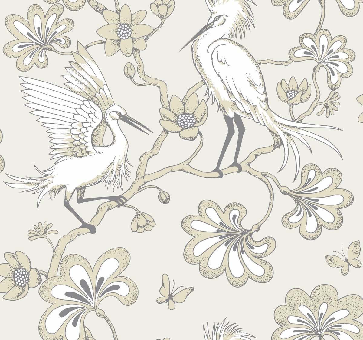 Обои FB1448 от производителя YORK коллекция Florence Broadhurst Складская программа. Настенные покрытия американской марки York – это декор высочайшего качества. Цвет - белый, бежевый. Белые стены наполняют комнату светом, а само помещение кажется более просторным. Страна производитель - США. Вид обоев - бумажные. Рисунок птицы. Изображения птиц и бабочке в декоре характерно Тиффани, а также для английского стиля.