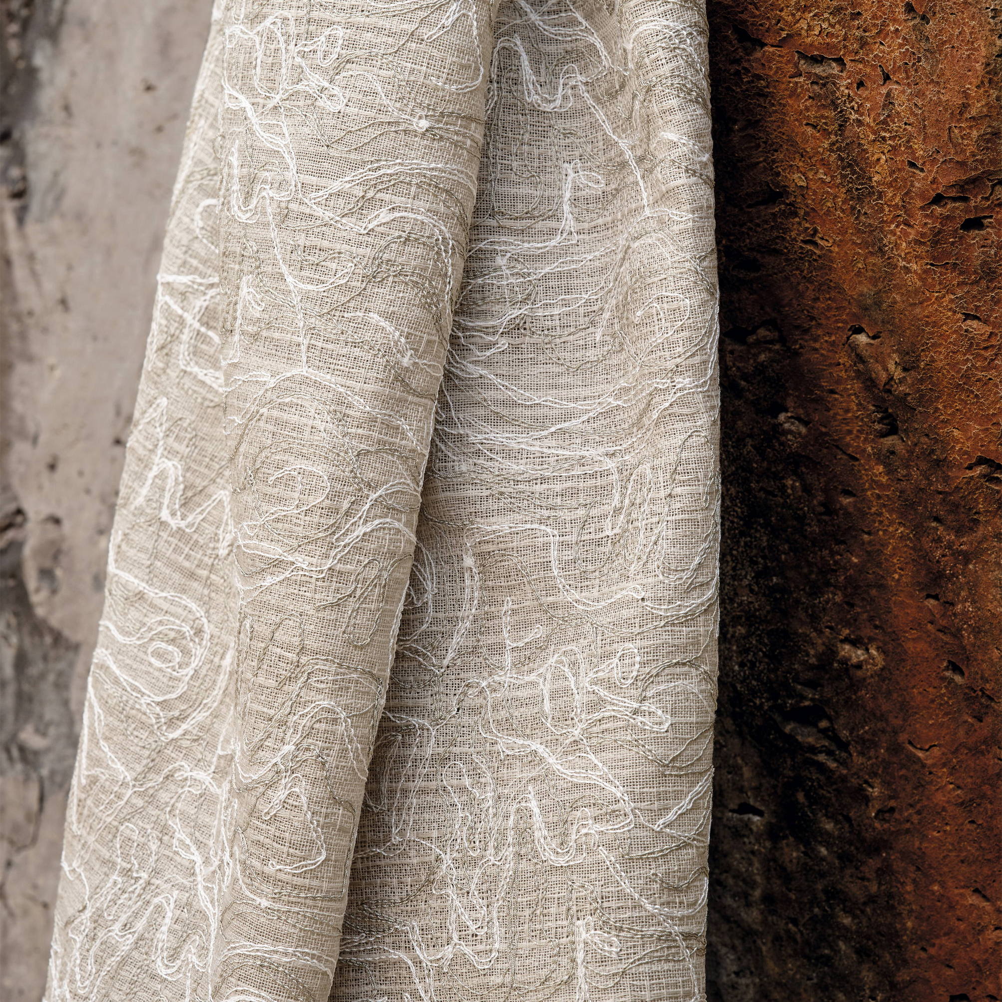 Английская ткань Zinc, коллекция Ventus Sheers, артикул Z748/02 — интерьерная ткань для штор, портьер и обивки мебели. Используется в современных и классических интерьерах. Прочная, эстетичная, с хорошей драпируемостью и богатой фактурой.